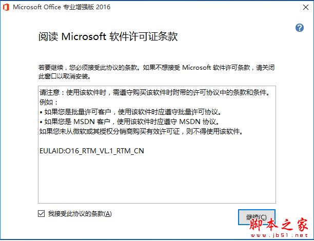 2. 勾选"我接受此协议的条款",然后点"继续":
