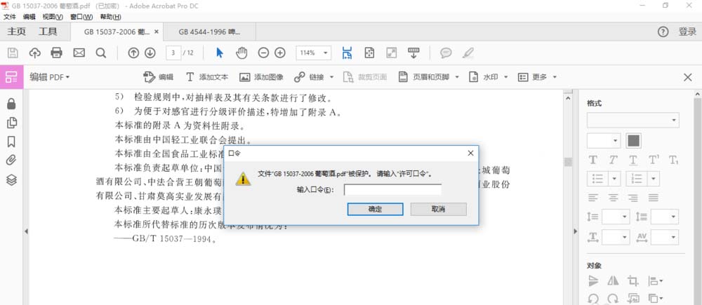 4、但是面对加密的文档,会提示需要"输入口令",这个时候需要使用软件PDFPasswordRmover,移除PDF的密码,就可以按照上面的方法愉快的OCR识别了。有时也会出现,点了"编辑图像",但是未能进行OCR识别,只是把当页识别成一整张图片,我也用PDFPasswordRmover处理了一下,然后再进行OCR识别,就没问题了。