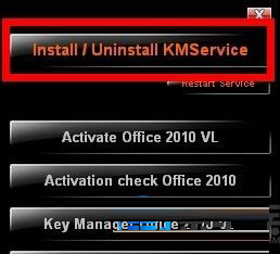 5、左键单击最上面的"Install/Uninstall KMService",弹出的对话框输入"y",如图。