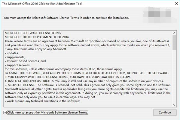 2、双击下载的工具,如下图,勾选"Click here to...",点击"Continue";