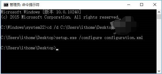 说明:本文中setup.exe文件放在桌面,第一条命令用来将CMD当前路径更改为桌面。你也可以只使用第二条命令,但命令中setup.exe和configuration.xml需替换为文件的完整路径。![]()