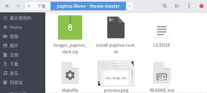 6、将下载好的解压后,可以运行附带的Shell脚本,即.sh文件,就可以将相应图标主题安装到相应位置,然后再用上述方法切换图标样式。