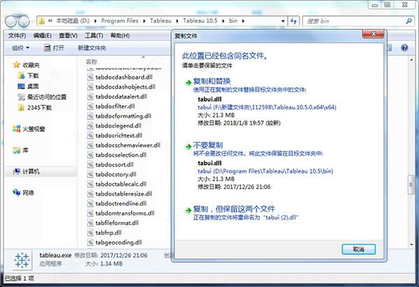 4、打开安装包"x64"目录,将tableau 10破解补丁"tabui.dll"复制到安装目录下覆盖源文件