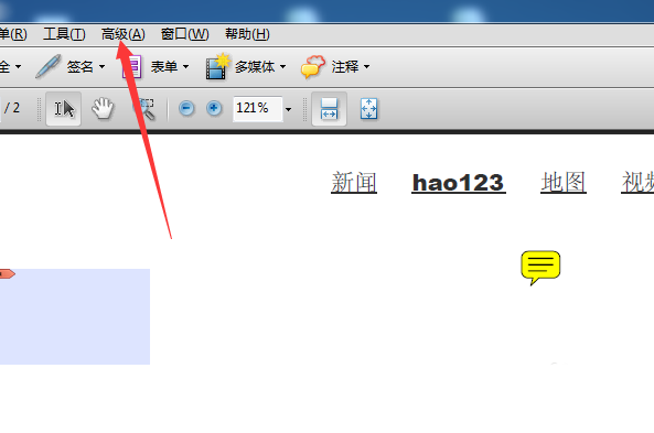 2、点击了的Adobe Acrobat的菜单中的高级的菜单。