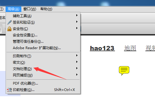 3、点击了高级的菜单之后,弹出了下拉菜单选中为文档处理的选项。