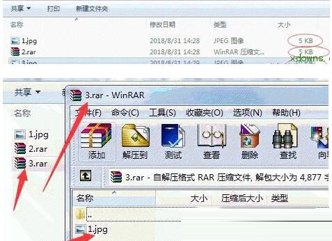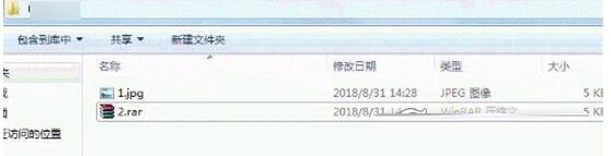 先要准备好要隐藏的压缩包及伪装图片,为了简化操作,此时的文件尽量以简单的数字命名。不建议使用中文名称,如图中的文件1.jpg和2.rar 放在同一文件夹中。