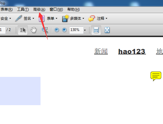 2、然后点击了的Adobe Acrobat的菜单中的高级的菜单。