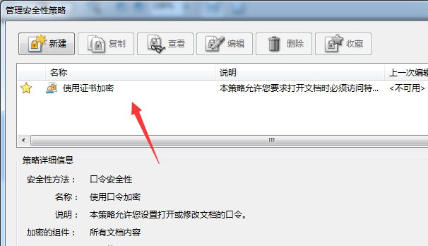 4、选中安全性的选项之后,弹出了下一级菜单选中为管理安全性策略的的选项。