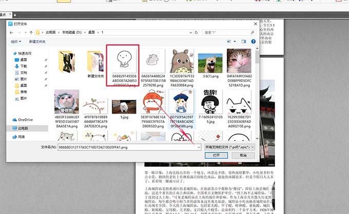 3、打开添加图像后,会显示一个本地窗口,在这个窗口中搜索想要添加到PDF文件中的图片,点击选中,再点击下方的打开。