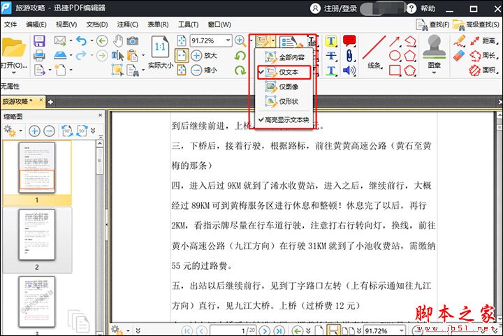 第二步、打开添加上的PDF文件进入到软件的编辑页面,点击鼠标左键选择文件上方的内容编辑工具,点击【仅文件】按钮选择并编辑文本;