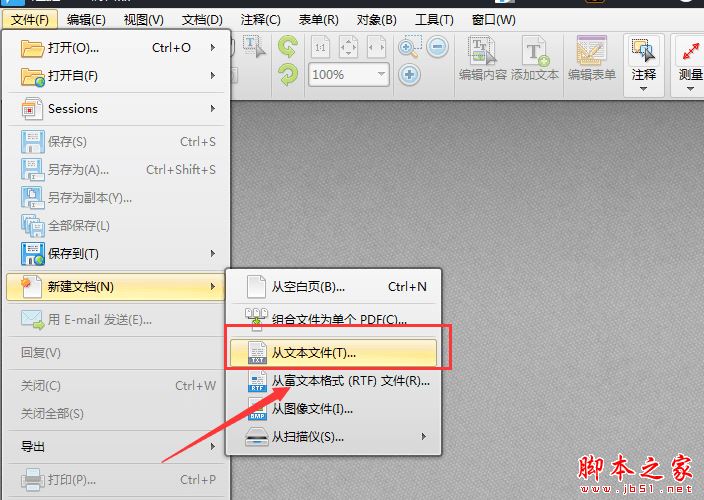 首先当然是将迅捷pdf编辑器打开,需要点击界面的"文件"选项,然后点击"新建文档"里的"从文本文件"选项,进行文档新建操作。