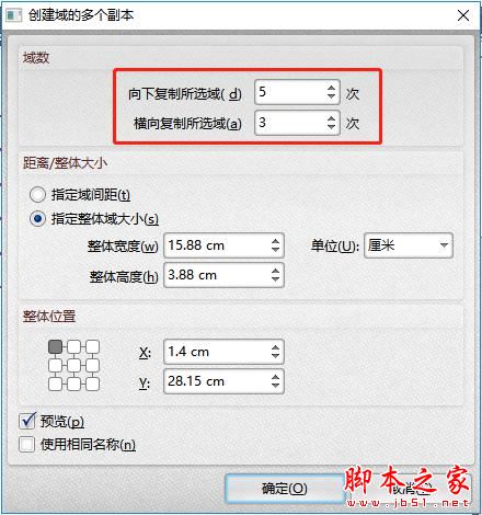 第六步、如图所示,在域数中设置行列数,点击"确定"即可。