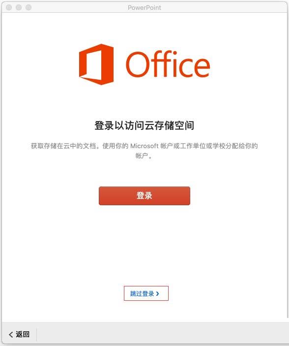 注:Office for Mac 2019的账号登录,跟激活无关,用户可直接跳过正常使用。