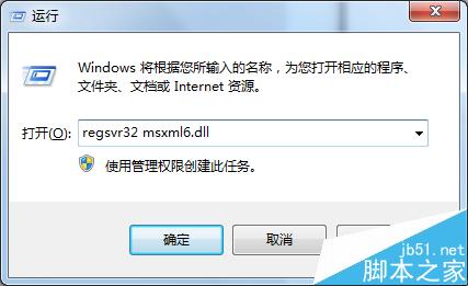 b、再次在运行里输入:regsvr32 msxml6.dll,然后确定