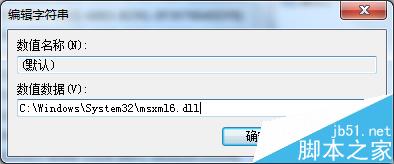 10、将数值数据%SystemRoot%System32msxml6.dll更改为C:WindowsSystem32msxml6.dll,改好后点击确定。