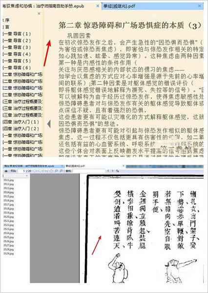 1、这里以pdf和epub文件为例,这两个采用不同的样式,我们可以看到pdf背景色是白色的,看就了比较伤眼睛,而EPUB的默认背景色偏红,这里我们都不太满意,我们把它们改为绿色的护眼色;