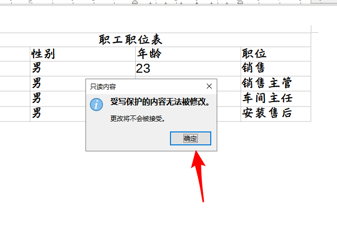 4、之后当用户要修改已保护的单元格内容时就会出现下图所示的错误提示。