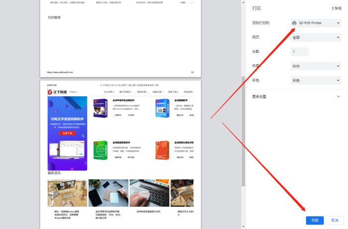 第二步、然后在弹出的对话框中,选择"SD PDF Printer",点击"打印"即可。