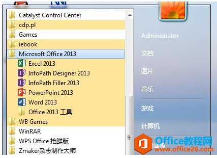 10.开始菜单中找到office2013 发送快捷方式到桌面即可