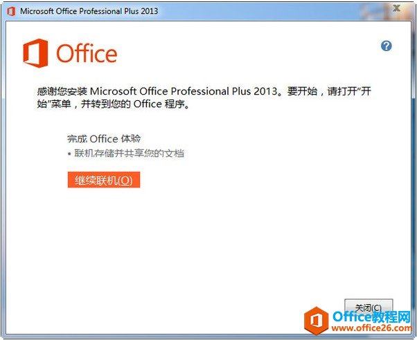 9.好了,我们安装完成了,关闭下面这个界面就行,office2013不会自动在桌面上创建快捷方式的,对于许多喜欢DIY的用户来说,比较适合