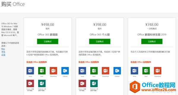 我们在微软官网上购买 Office 365,可以看到就算是最便宜的版本,也是包含很多套件的。