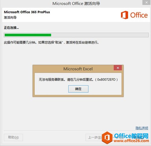 office激活过程种提示:无法与服务器联系,请几分钟后再试
