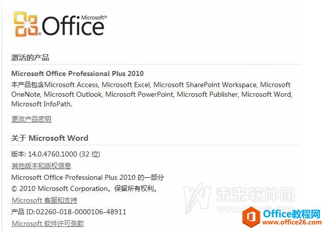 看上图,激活成功了,图片上的字有点花,大家将就下吧.重新打开Office 2010,查看激活状态你会发现: