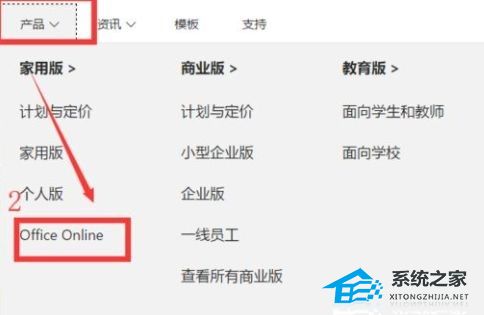 3、接着在弹出的界面,点击产品,进入office online界面。