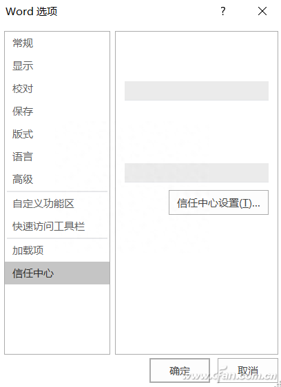 在“选项”中,左侧点选切换到“信任中心”,然后选择右侧的“信任中心设置”(本图为节省空间PS过,与实际略有出入)。