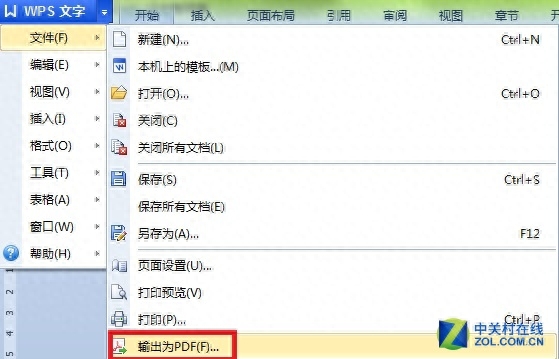 在WPS文档中点击“WPS文字” - “文件”,会出现一个很长的下拉菜单,我们直接找到“输出为PDF格式”,点击即可。