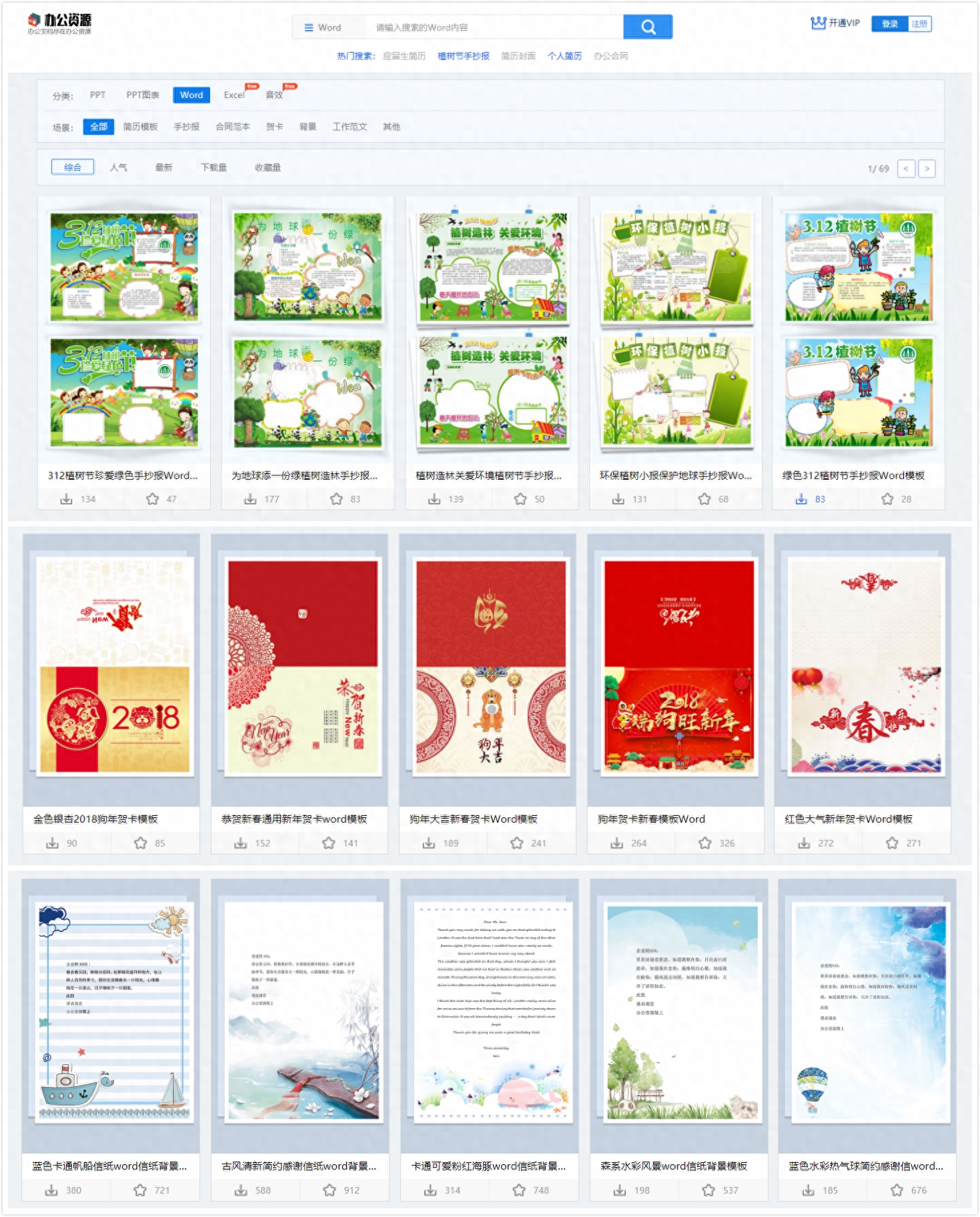 最后最后,这里还要告诉大家一个更为便捷的小技巧,如果你想要用word制作一些精美的贺卡或手抄报或背景好看的信纸卡片,那么你可以到『办公资源网』中找一些好看又精致的Word模板来套用,这样不仅能省时,还很好看。