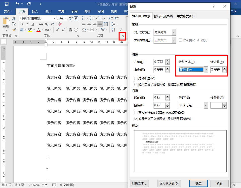只需要按下“Ctrl + A”快捷键全选文章,在点击菜单栏中的“段落”功能,点击“特殊格式”找到首行缩进,设置缩进值为2即可。