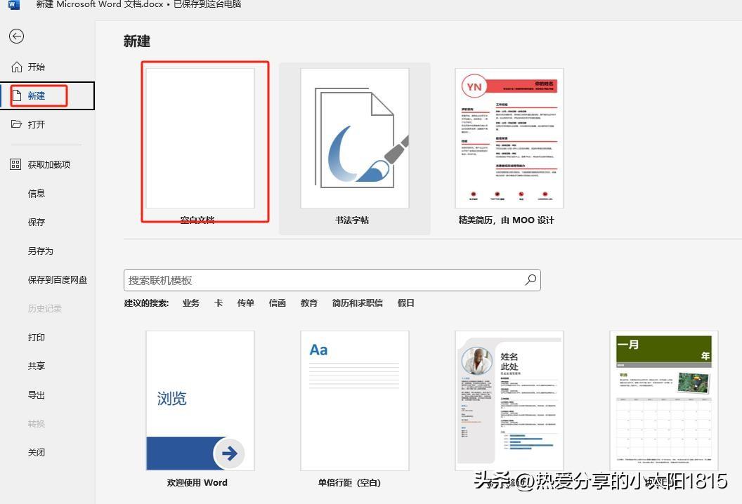 (2)然后再点击新建,我们看有很多的模板可以选择,我们可以根据自己的需要来创建,我这里选择一个空白文档,这样就新建好了一个Word文档。