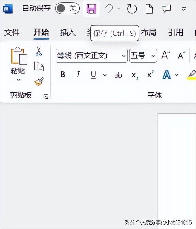 (3)由于我们这样新建的Word文档还没有保存,所以在电脑上是无法找到该文档的,我们需要点击左上角的保存图标(快捷键:Ctrl+S)。
