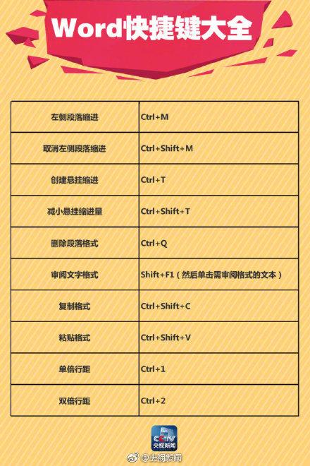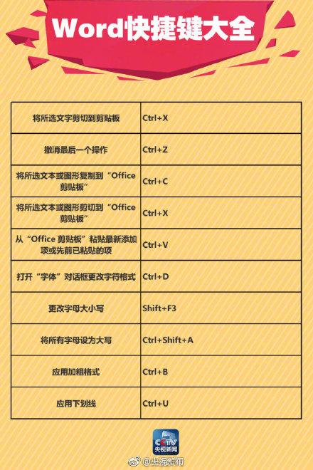 【转需!90个Word快捷键,高效办公利器】长知识复制、粘贴摁啥,大家都烂熟于心,但是word的其他常用功能,比如从文本复制格式、给文字添加双下划线等等你知道快捷键是什么吗?这里有整整90个word快捷键!行云流水的操作也能从你手中闪现,赶快马住!via@央视新闻