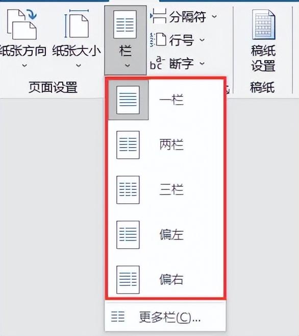 第三步:在“布局”选项卡中,找到“分栏”选项,选择适合您需求的分栏方式,如两栏、三栏等。