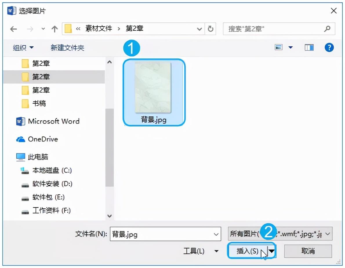 Step04 选择插入的图片。打开【选择图片】对话框,选择需要作为填充背景的图片;单击【插入】按钮。