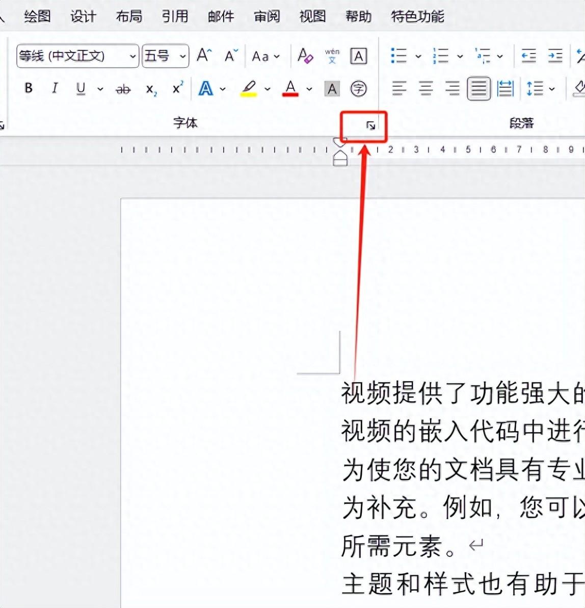 2、点击字体组中的对话框启动器或使用快捷键Ctrl+D。