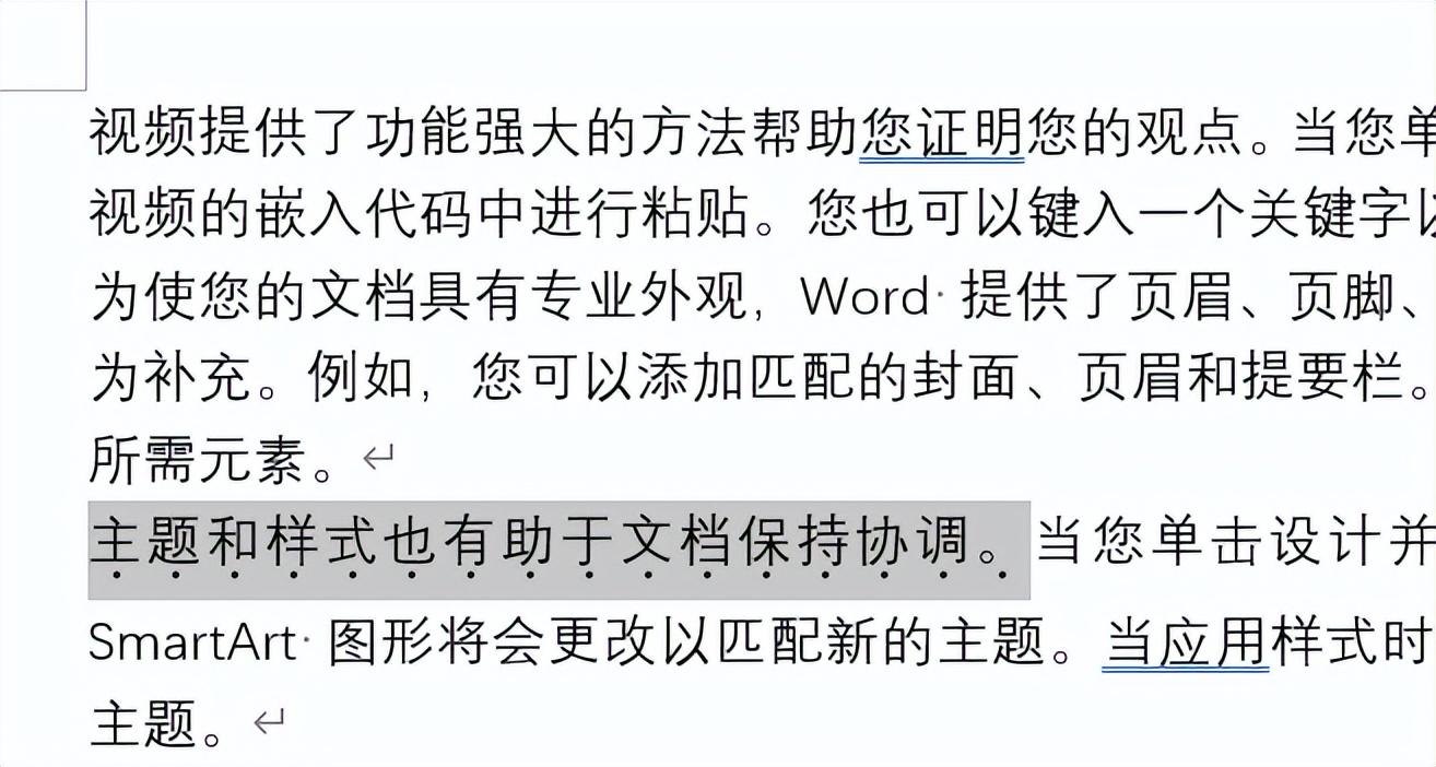4. 点击“确定”,我们就会看到选中的文字下方出现了一个小点,这就是着重号。