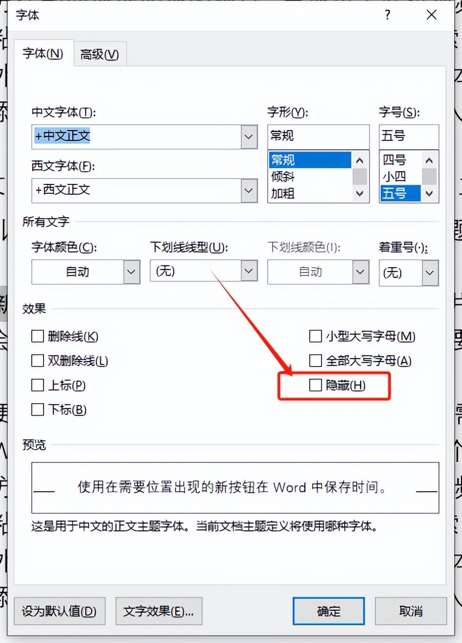 4、 被选中的文字就会从文档中“消失”,即使在打印预览中也不会显示。