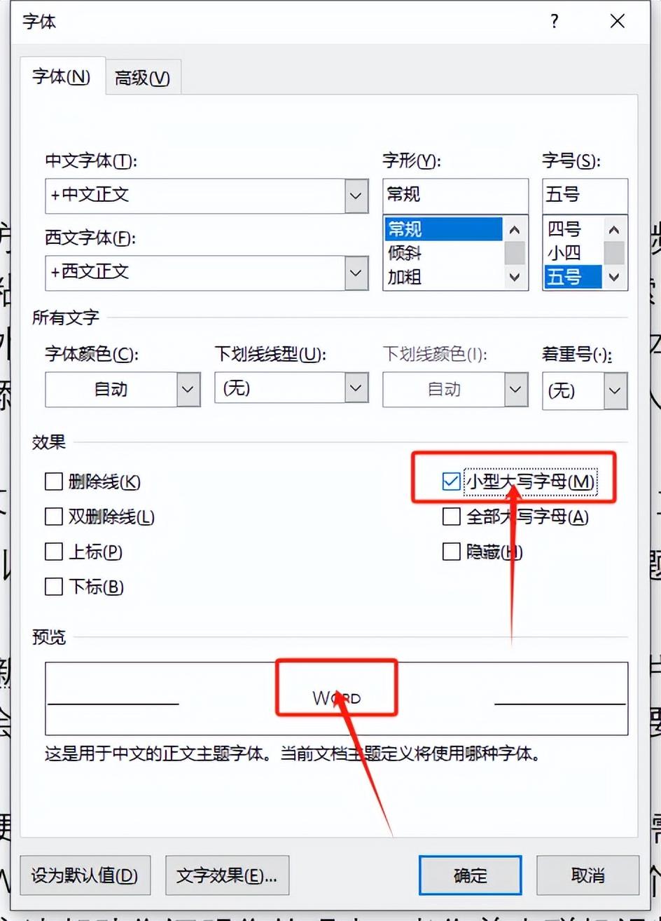 3. 勾选“小型大写字母”选项,然后点击“确定”。