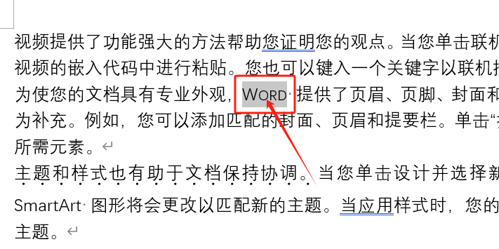 1. 选中你想要变为小型大写字母的文本,比如“word”。