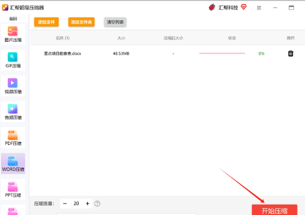 第一种方法:使用【汇帮超级压缩器】快速压缩Word文档