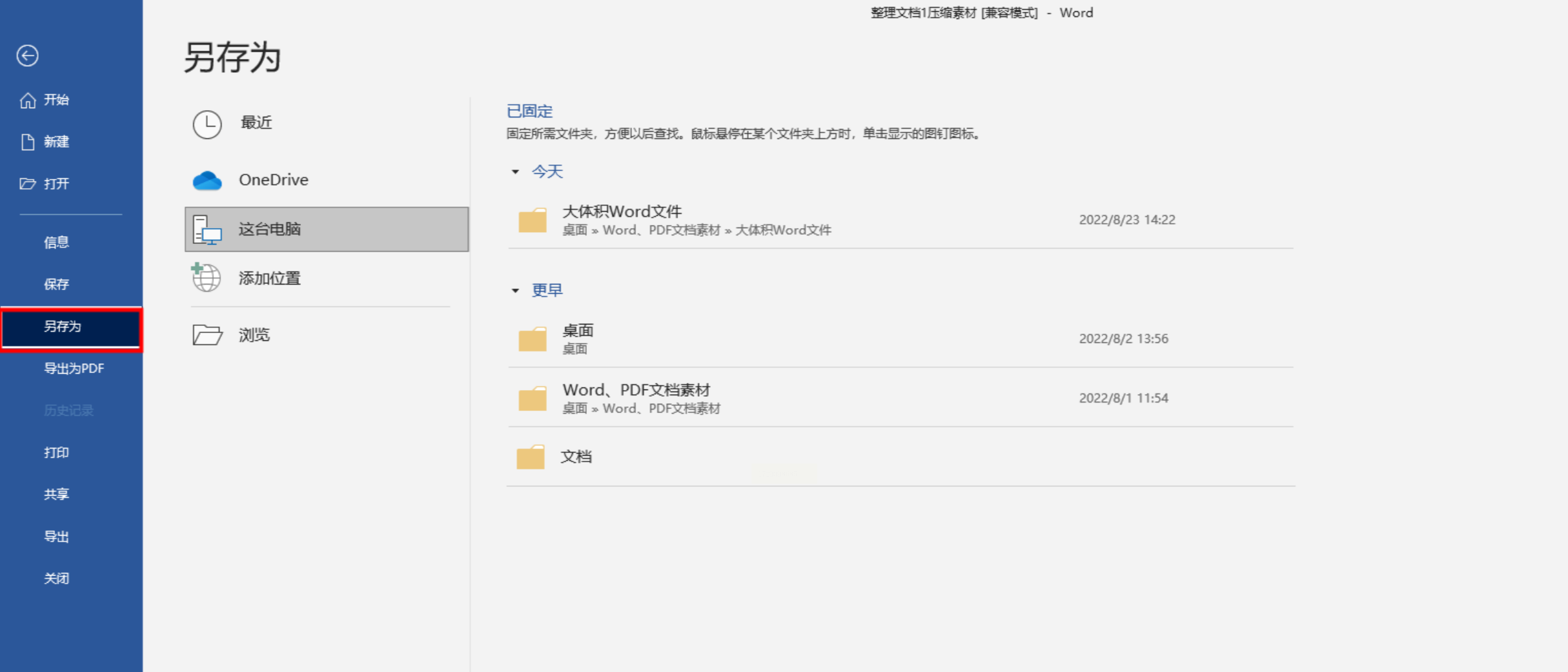 首先,打开你需要压缩的 Word 文档。在界面右上角的"文件"选项卡中,选择"另存为"命令。然后,指定保存文件的目的地,这将是你的文档的新家。