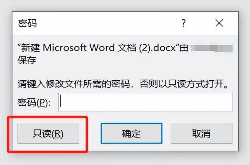1、双击打开需要编辑的只读文档,弹出提示对话框后,不用输密码直接点击【只读】选项进行访问。