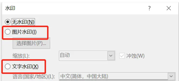 4、自定义水印:如果预设的水印样式不能满足需求,我们可以点击下拉菜单中的“自定义水印”选项。在弹出的水印设置窗口中,我们可以选择添加文字水印或图片水印。