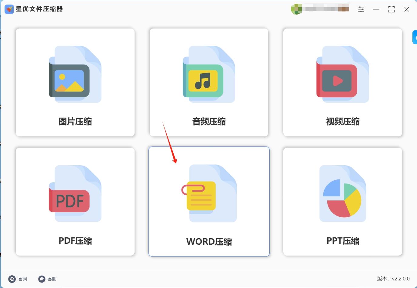 第一步,在开始之前,确保你已经成功安装了【星优文件压缩器】软件。安装完成后,双击启动软件。打开后,点击主界面的【Word压缩】选项,进入专门的Word文档压缩模块。除了Word压缩,软件还提供了其他文件格式的压缩功能,大家可以根据需求自由尝试。