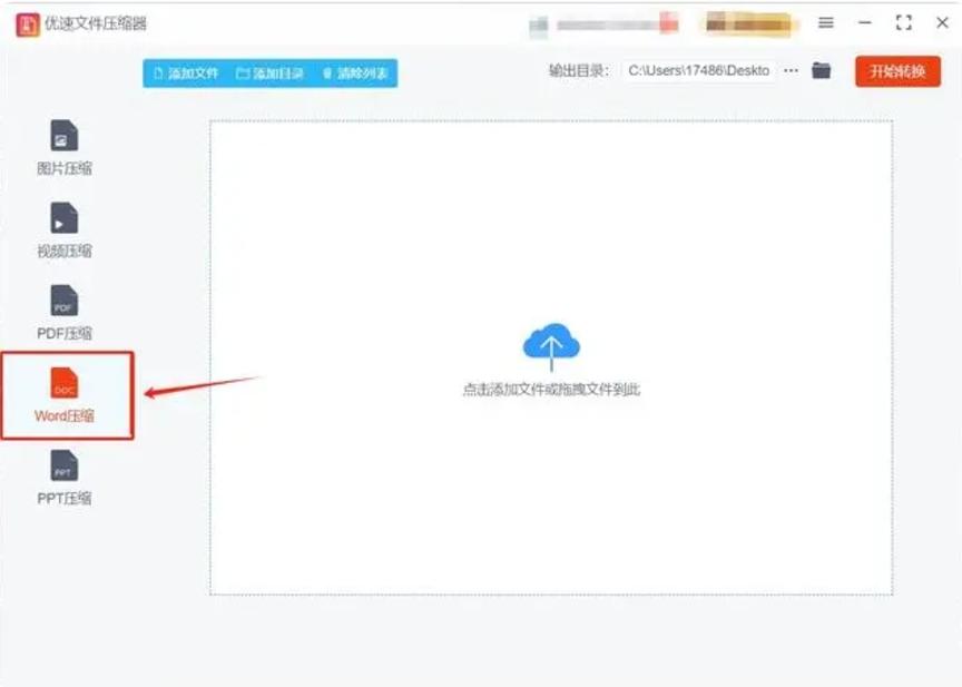 点击 “添加文件” 按钮,或直接将需要压缩的 Word 文档拖拽到软件界面中间的空白区域,也可点击 “添加目录” 按钮,一次性添加整个文件夹中的 Word 文档进行批量压缩。