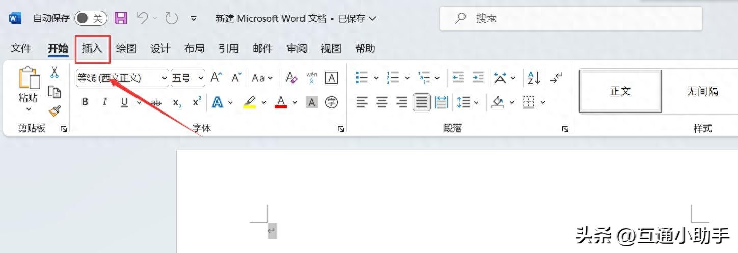 1、在电脑上打开Microsoft Word 文档后,点击“插入”。