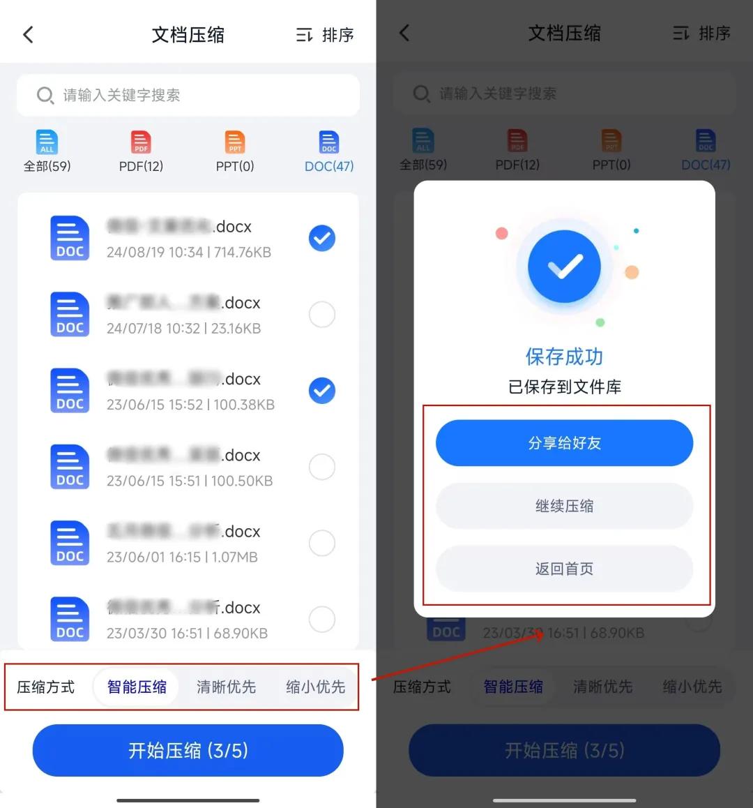 软件提供了多种压缩模式如智能压缩、清晰优先、缩小优先,选择自己需要的压缩模式,点击“开始压缩”即可。